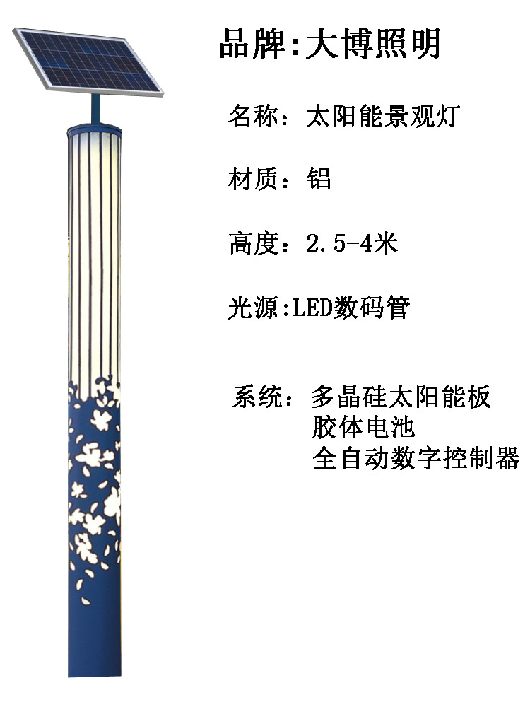 太陽能景觀燈小區照明裝飾高亮鋁制鏤空工藝特色LED景觀燈柱批發