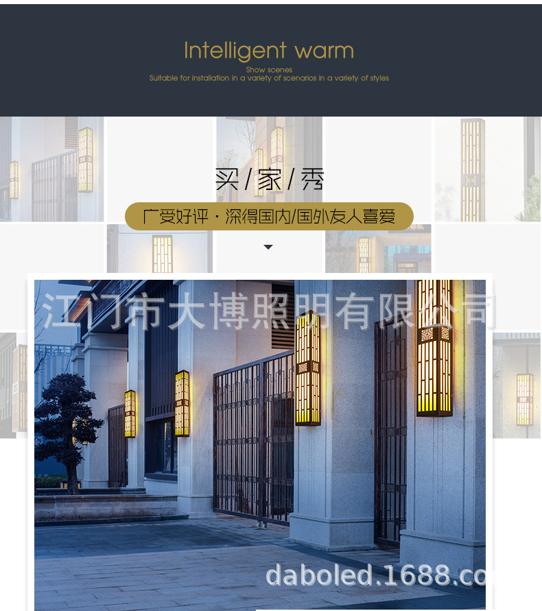 新中式戶外LED壁燈別墅門口照明壁掛燈特色激光雕花不銹鋼壁燈