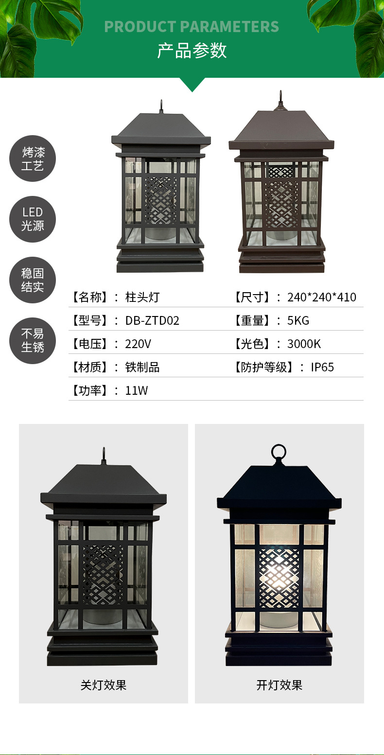 LED柱頭燈戶外景觀照明裝飾柱頭圍欄燈簡約中式庭院燈大門柱子燈