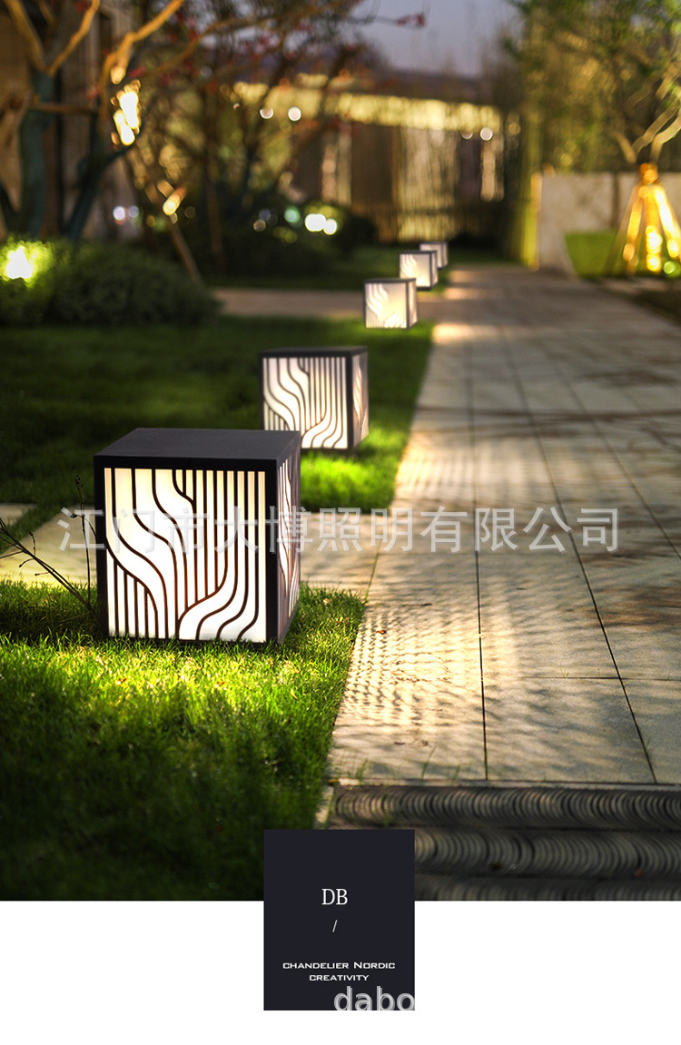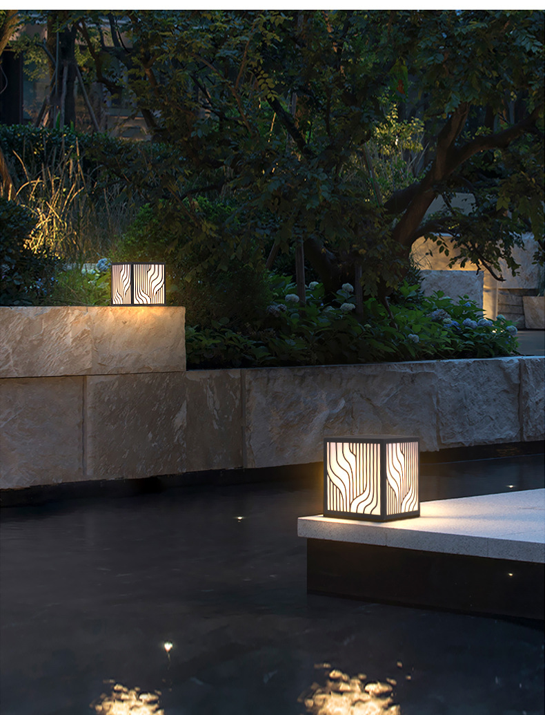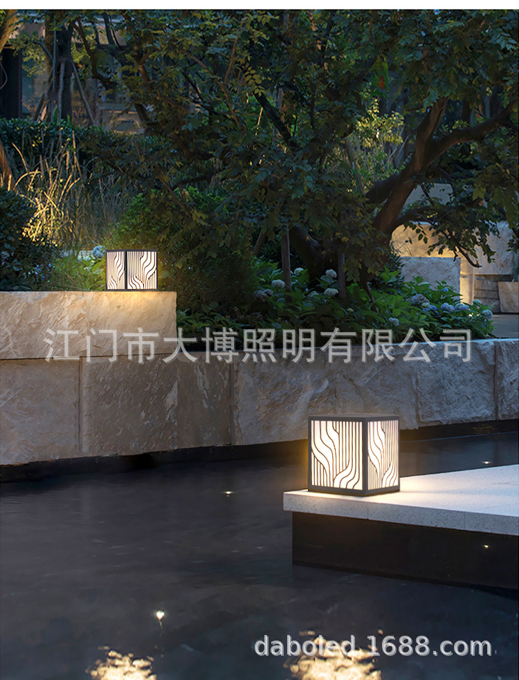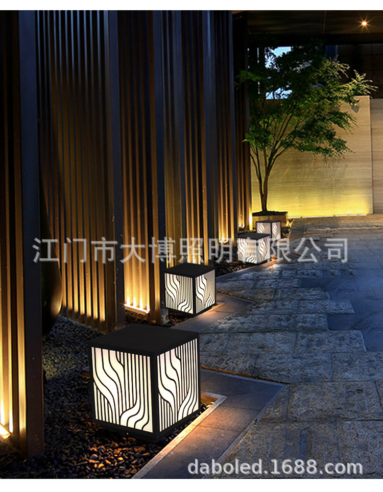 LED草坪燈現代中式簡約條紋方形柱頭燈小區商業街防水廠家批發