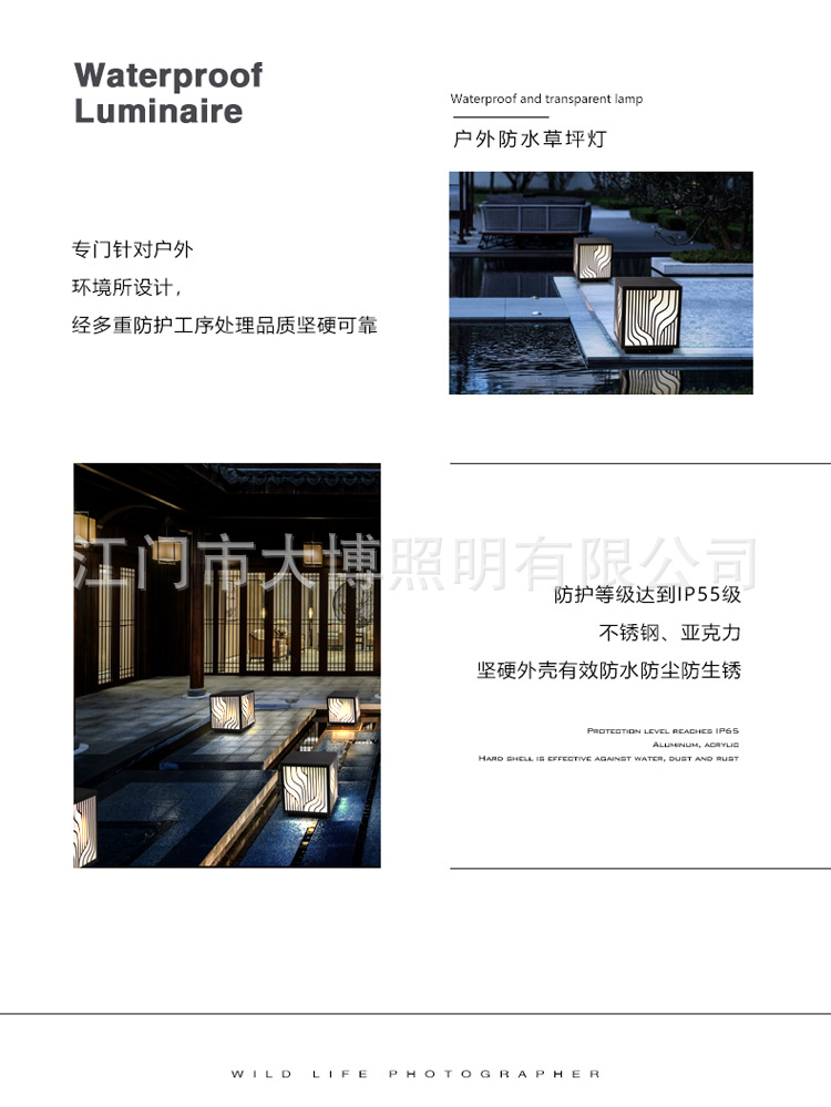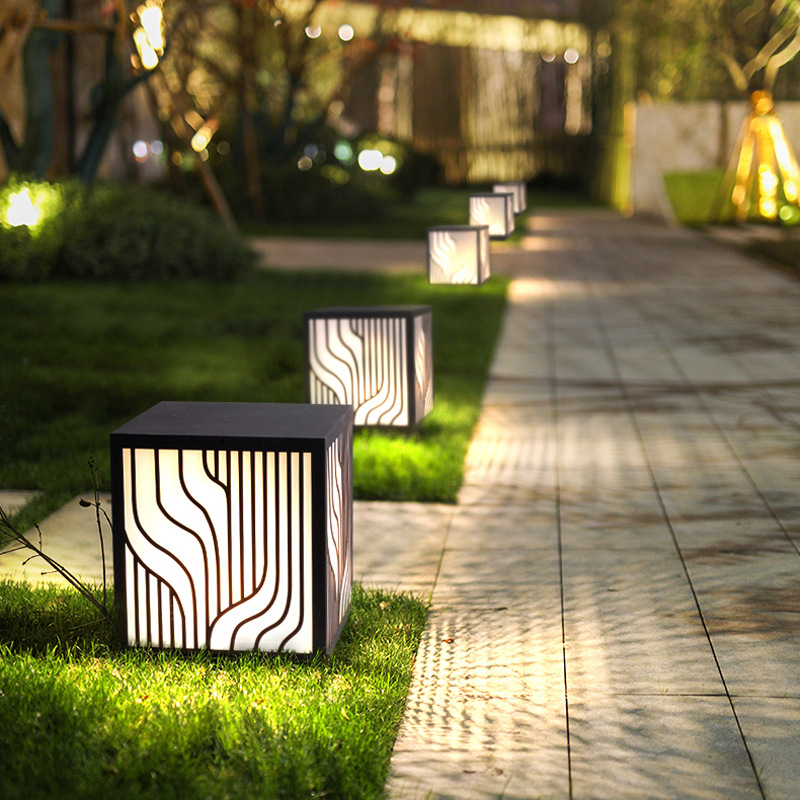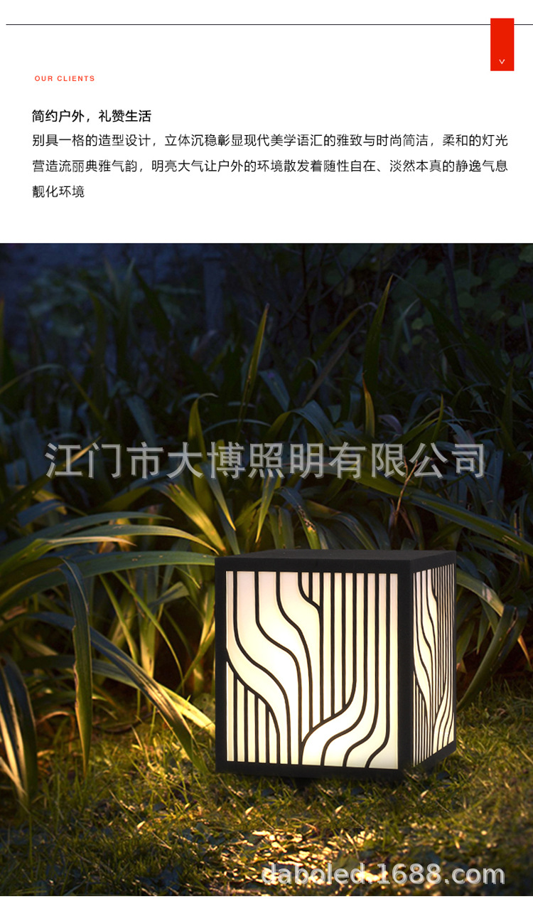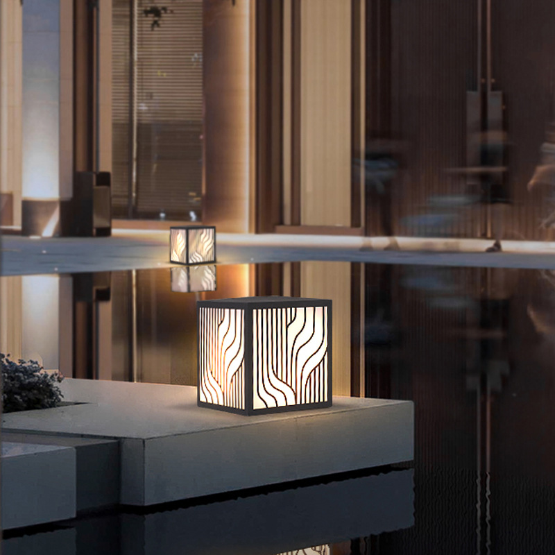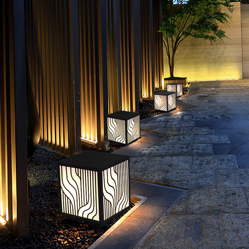 LED草坪燈現代中式簡約條紋方形柱頭燈小區商業街防水廠家批發