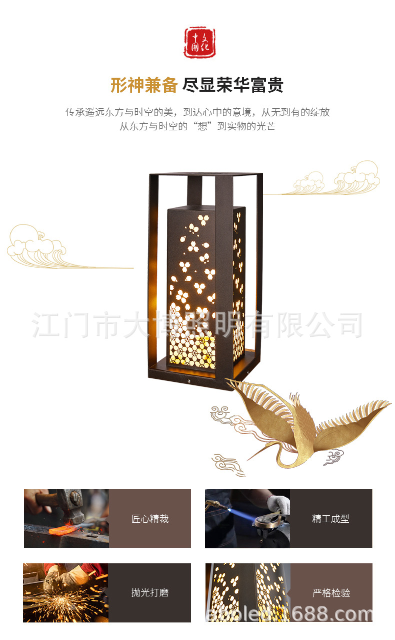 中式柱頭燈古典花韻落地式特色圍墻燈小區(qū)花園別墅LED草坪燈批發(fā)