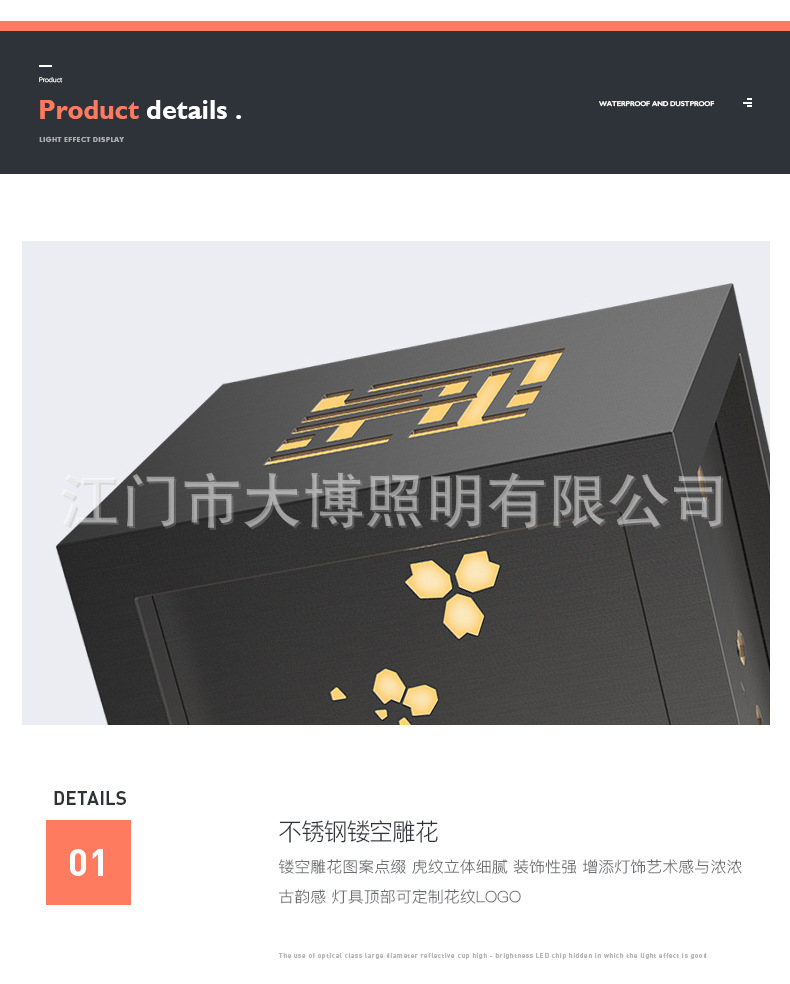 led柱頭燈特色新中式拉絲電鍍不銹鋼戶外小區庭院草坪圍墻燈批發